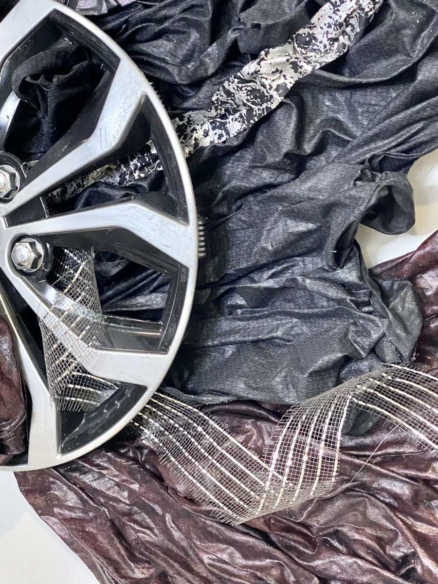 Wood, Stiffened Fabric, Netted Fabric, Hubcap